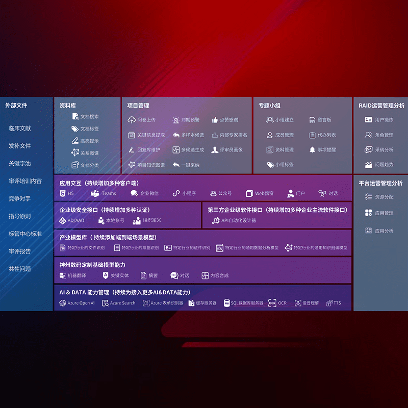 医疗器械产品上市前,,,要熟悉严格与繁复评审标准,,,,整理分析监管机构指导文件中的海量信息。。。企业急需一个智能化解决方案,,,,提升知识管理效率,,,提高评审通过率,,,以提升其市场竞争力。。。